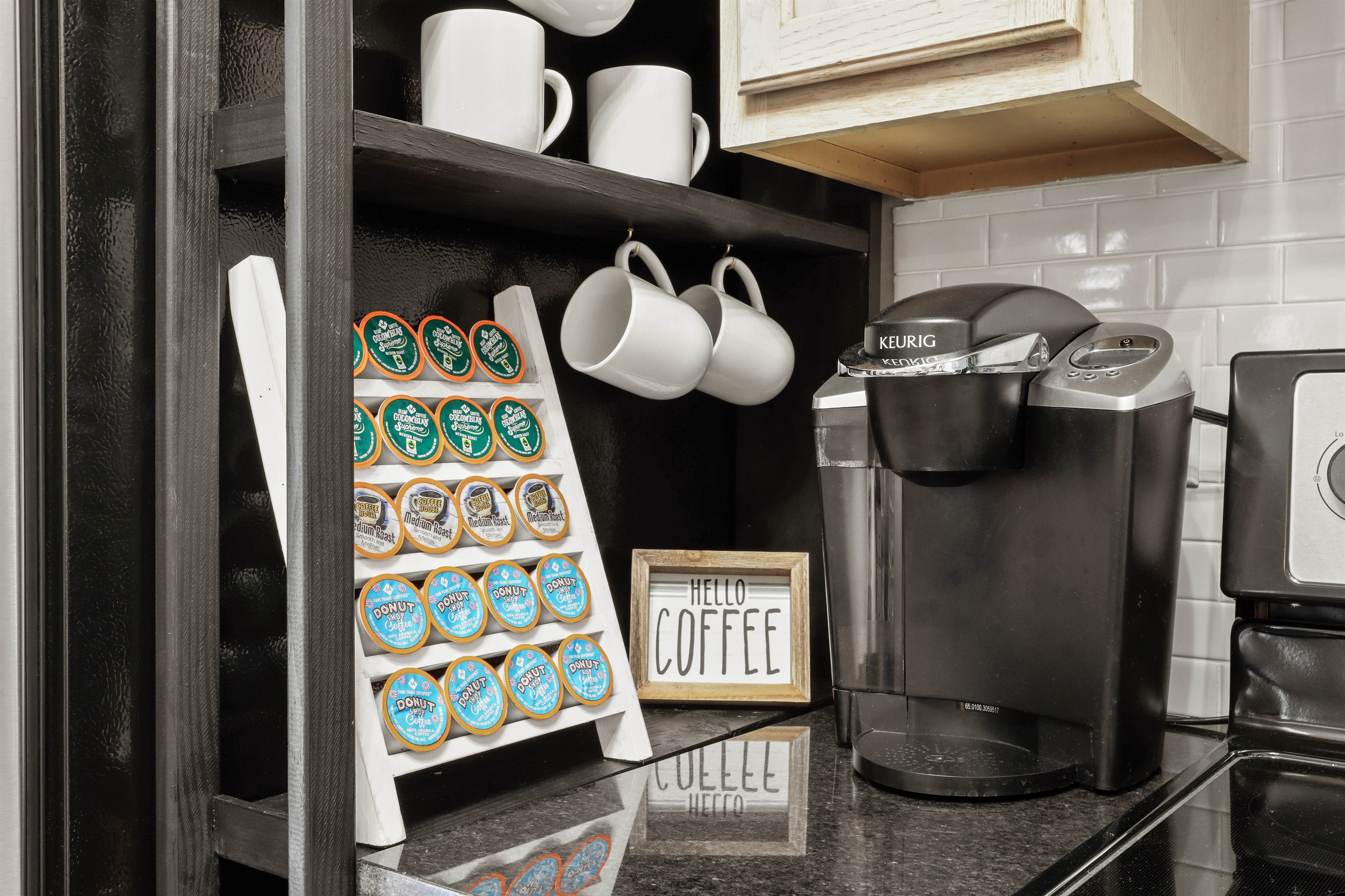After getting a good night’s rest, wake up to enjoy a complimentary cup of coffee from our coffee bar fully stocked with assorted teas, sweeteners, creamers, and K-cup coffee pods.