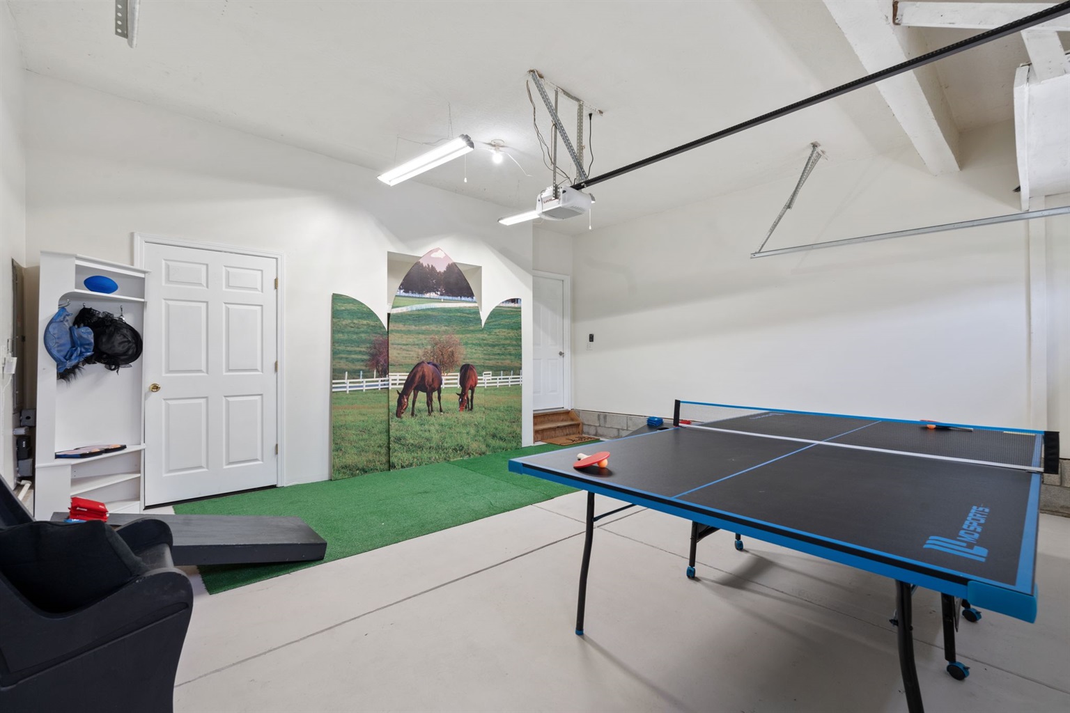 For some added fun, head to the garage where you’ll find a game room, complete with a ping pong table, corn hole, and a Kentucky-themed photo booth for capturing fun memories with friends and loved ones. Whether you're here to relax or entertain, this home has it all!