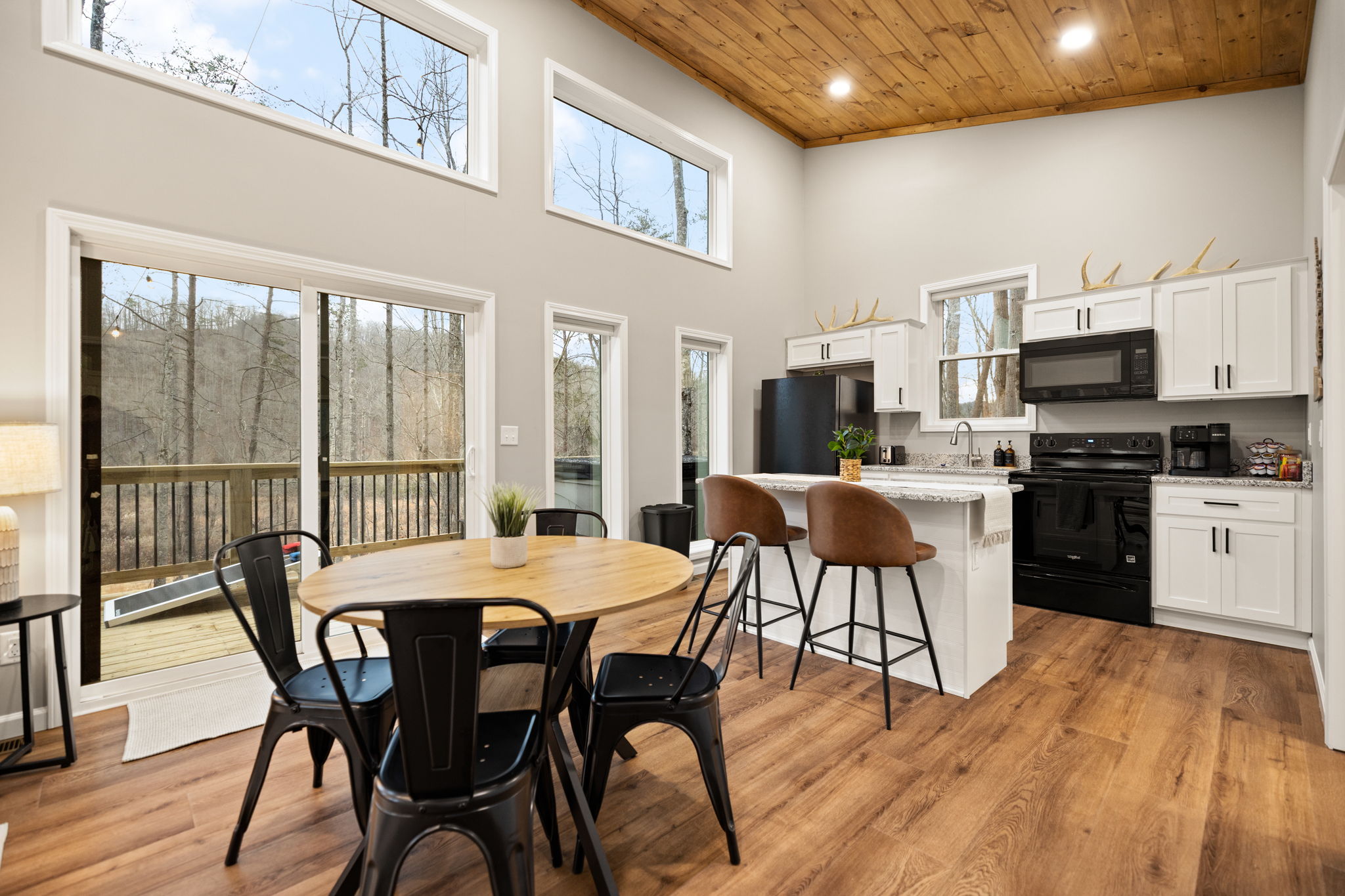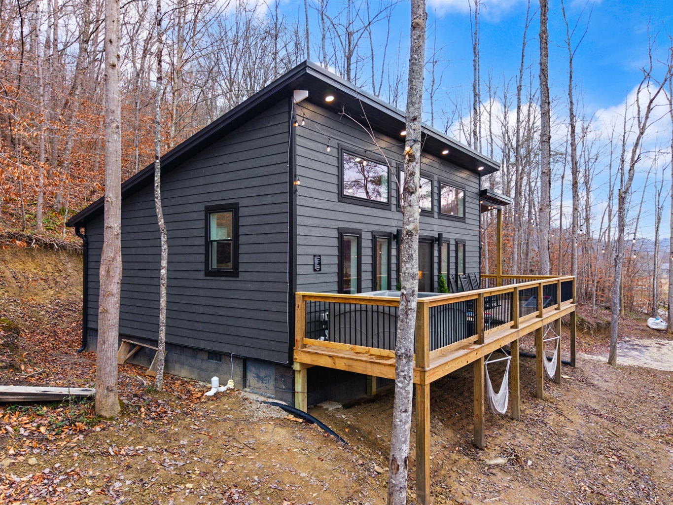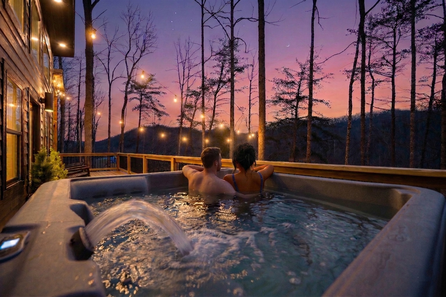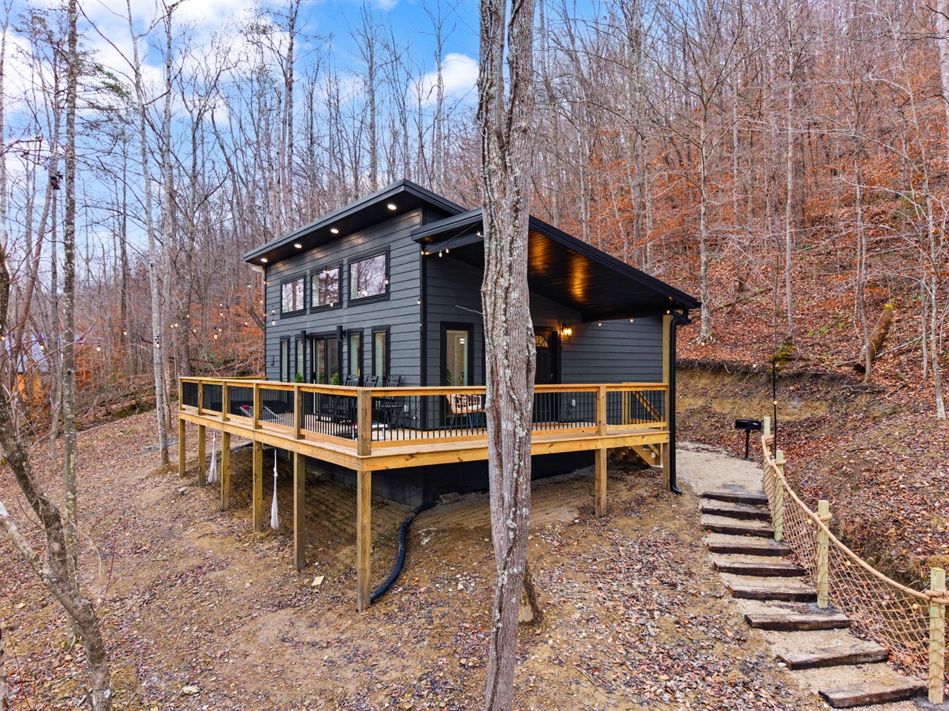 Outdoor time is a highlight here. Soak in the 5-person hot tub (open year-round!), grill dinner, play a game of cornhole, or sit back in a rocking chair and take in the fresh mountain air. With low light pollution, the night skies here are incredible — use the telescope for a beautiful night of stargazing out on the deck!