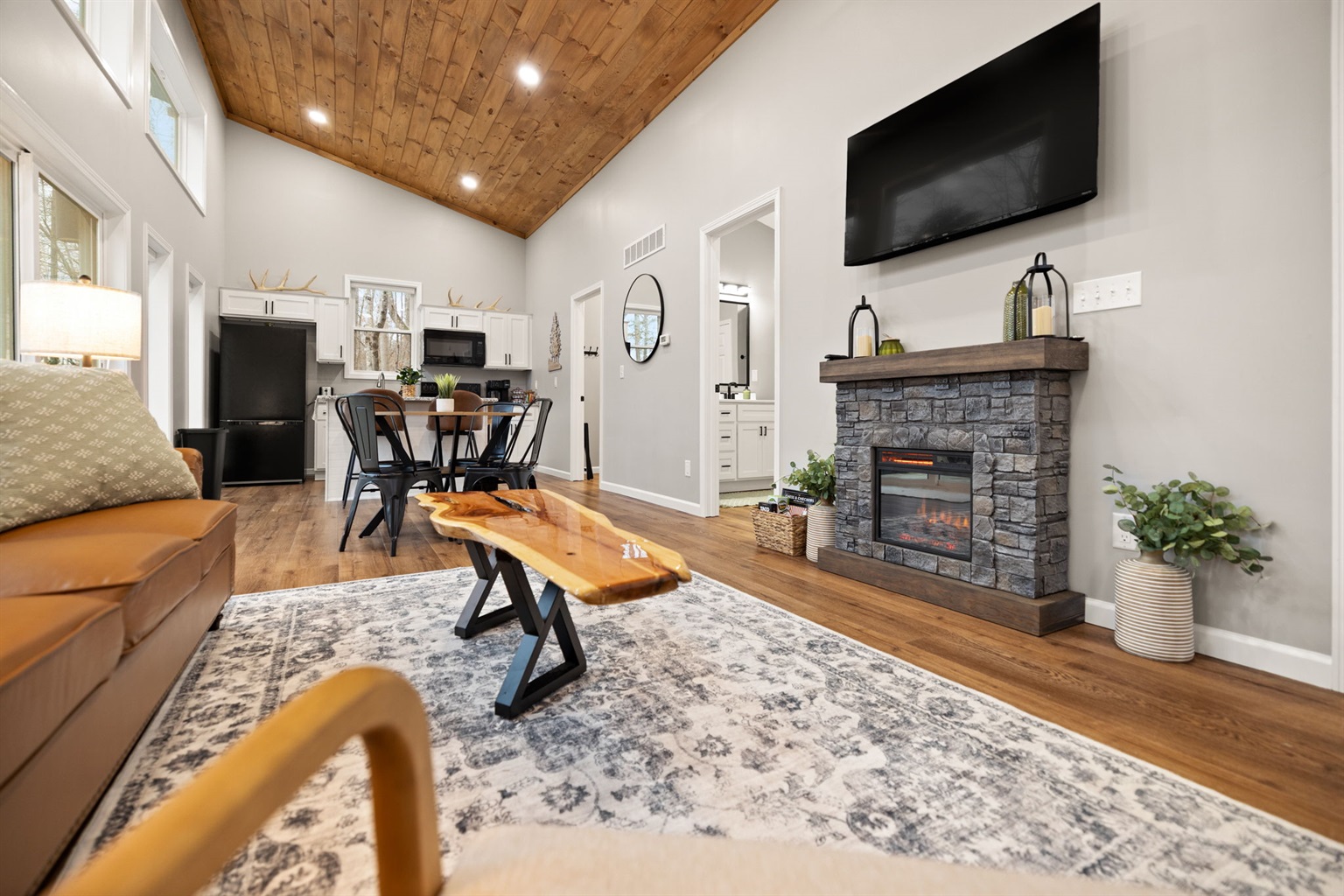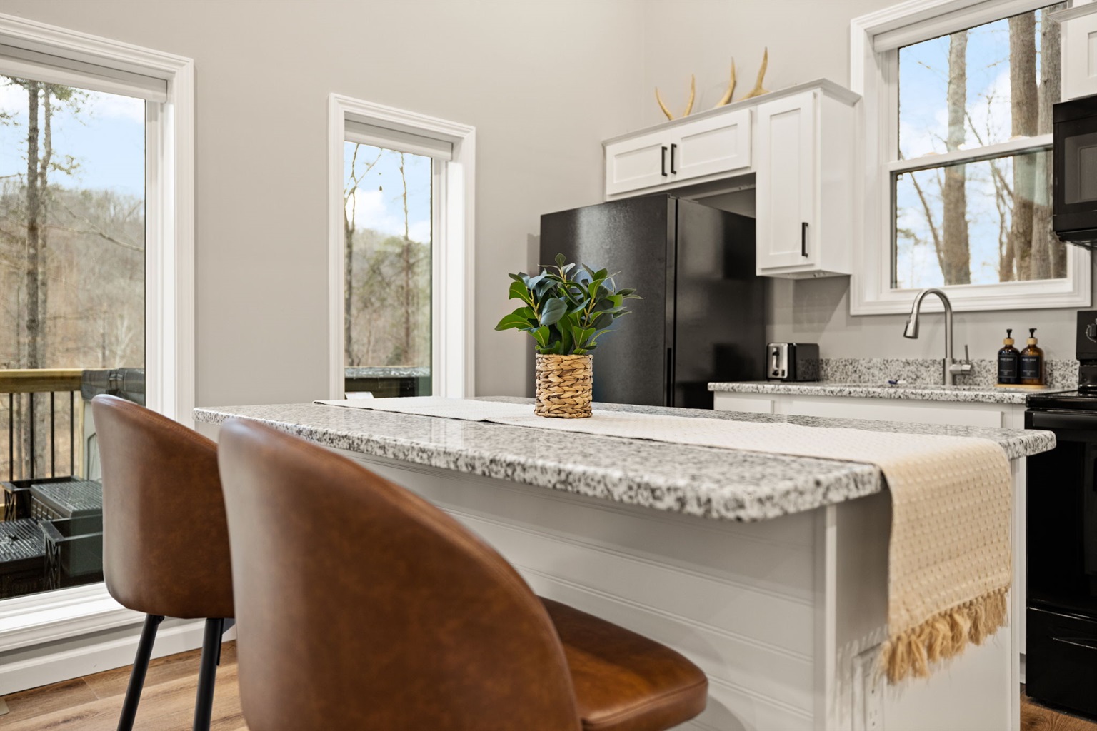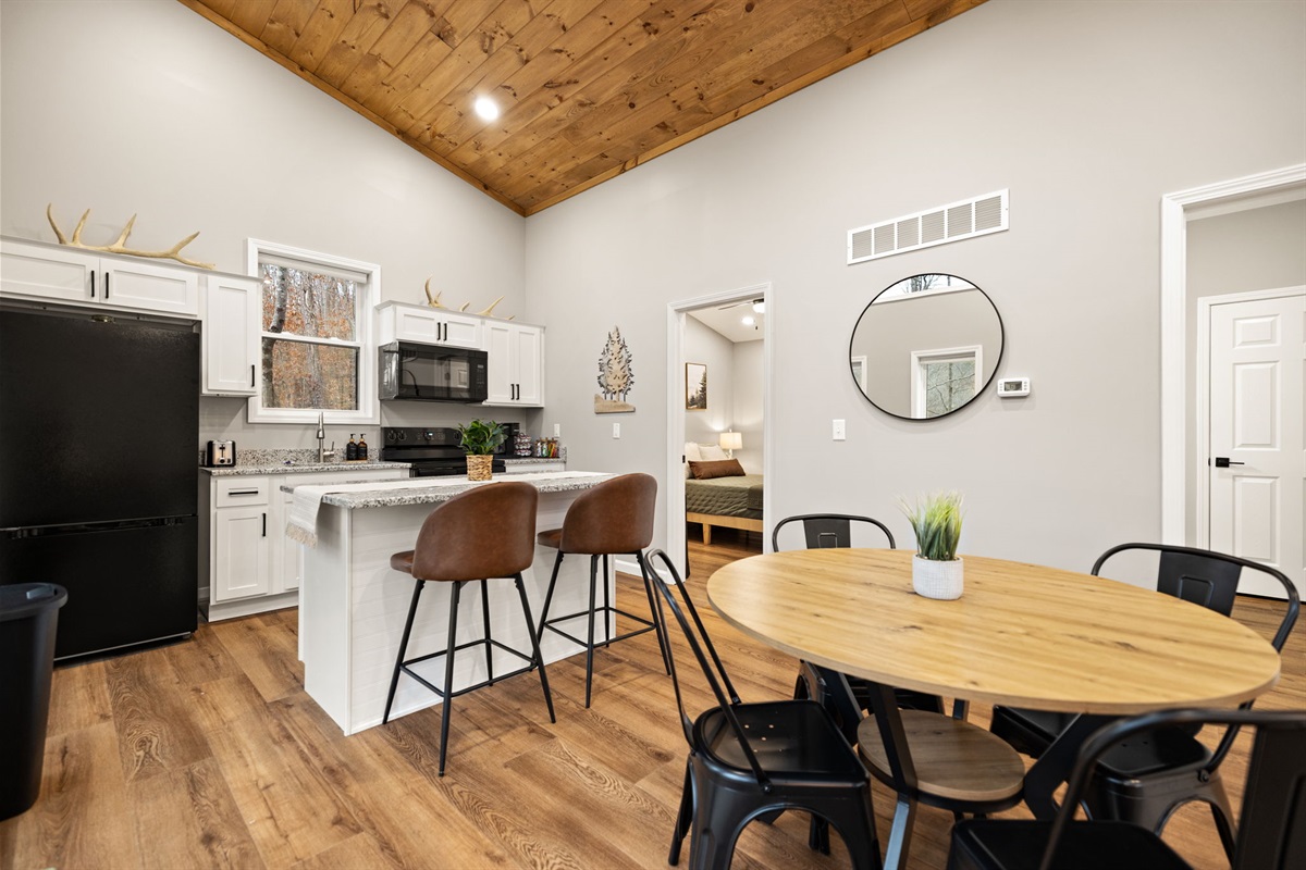 If you’re in the mood for a quieter evening, enjoy the electric fireplace, pull out a board game, or simply relax in the living room. The modern kitchen outfitted with brand new appliances and granite countertops is fully stocked with pots, pans, dishes, utensils, cooking oil, and a starter set of spices—making it easy to cook some delicious meals!